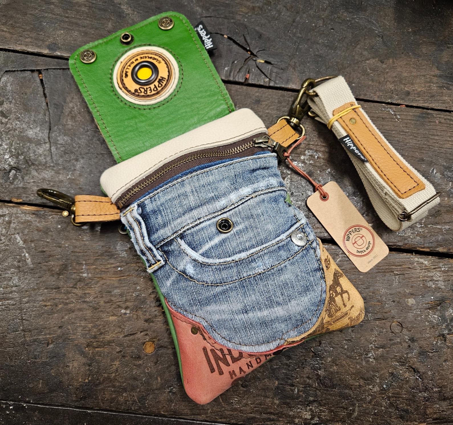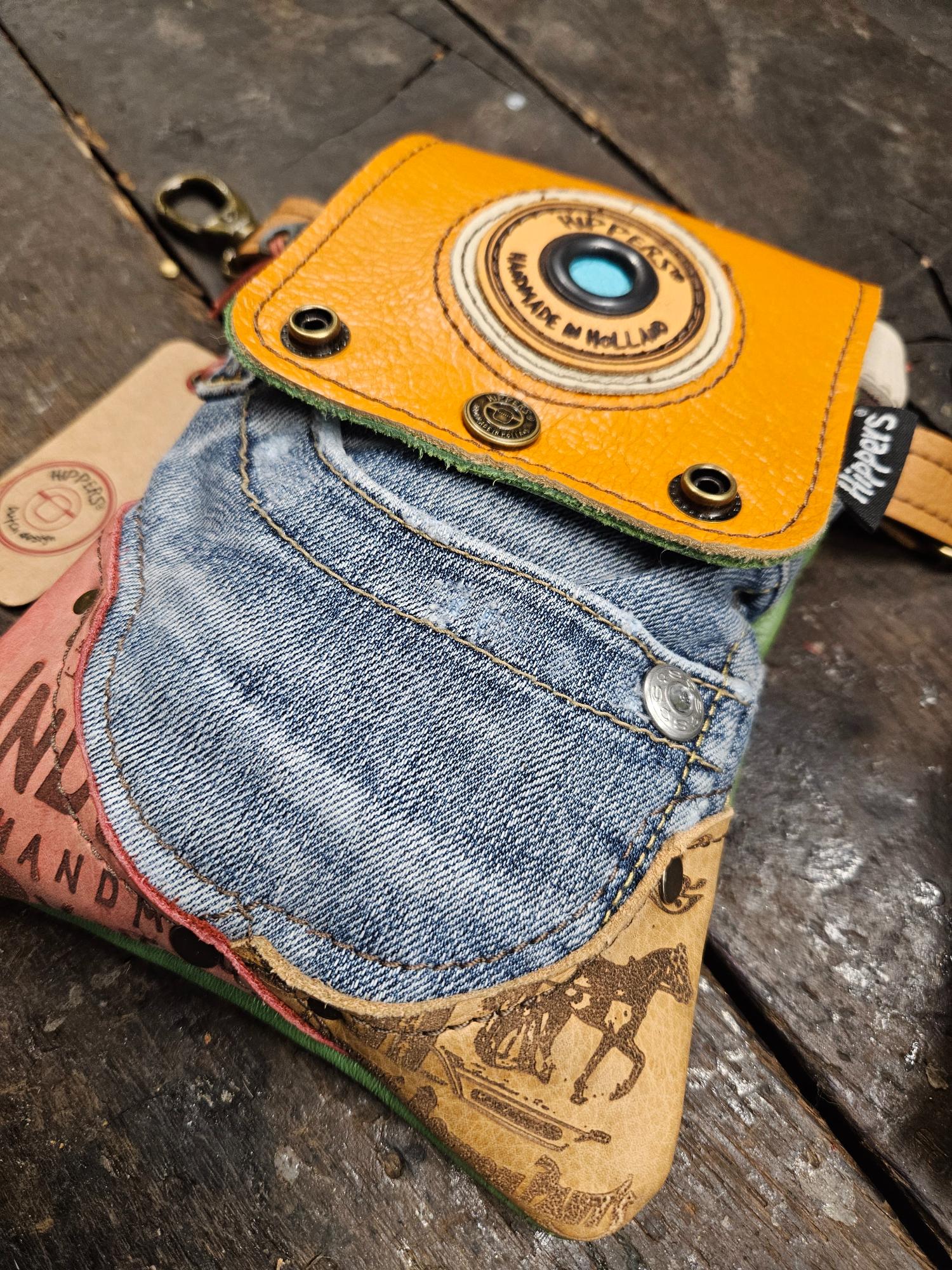 Deze tassen zijn in Nederland gemaakt. De heuptassen zijn voornamelijk gemaakt van oude leren bankstellen en oude spijkerbroeken. Eigenlijk van alles wat leuk en mooi is om te recyclen. Hoe gaaf is dat! Het kan dus gewoon zijn dat je het bankstel van je tante aan je broek hebt hangen!