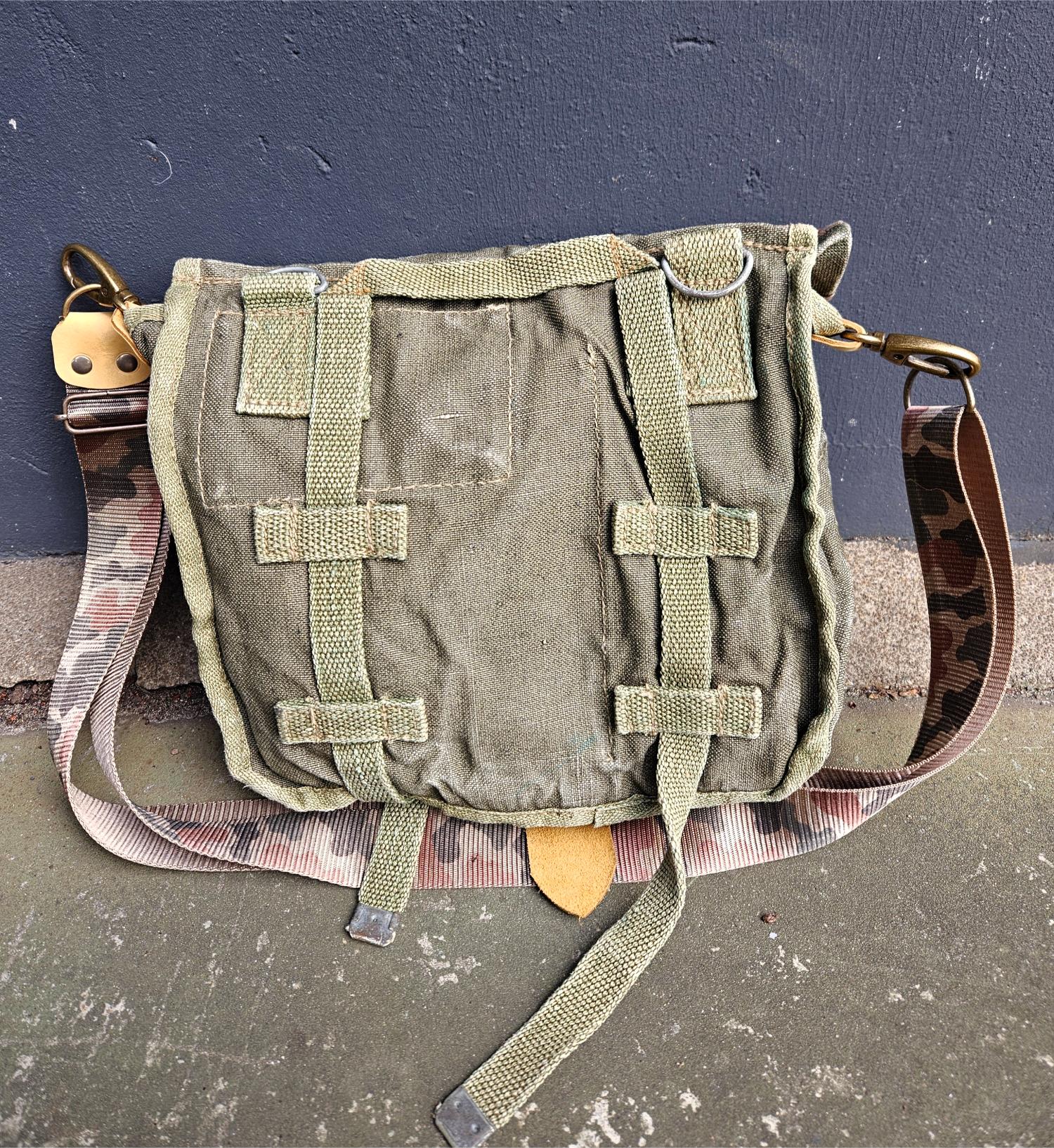 Deze bijzondere pukkeltas begon zijn leven als een stevige, oude Poolse legercanvas tas en kreeg dankzij Hippers een tweede, stijlvolle kans. De originele militaire uitstraling is behouden, maar opgepimpt met prachtige accenten van leer afkomstig van oude bankstellen. Zo krijgt elk stuk materiaal een nieuw leven en ontstaat een tas met een verhaal.
