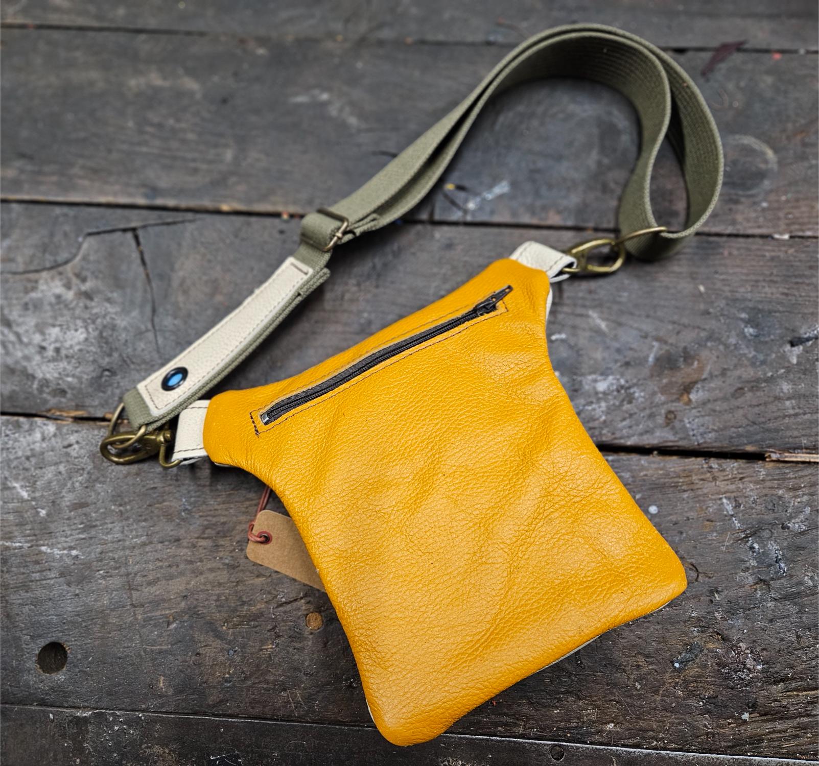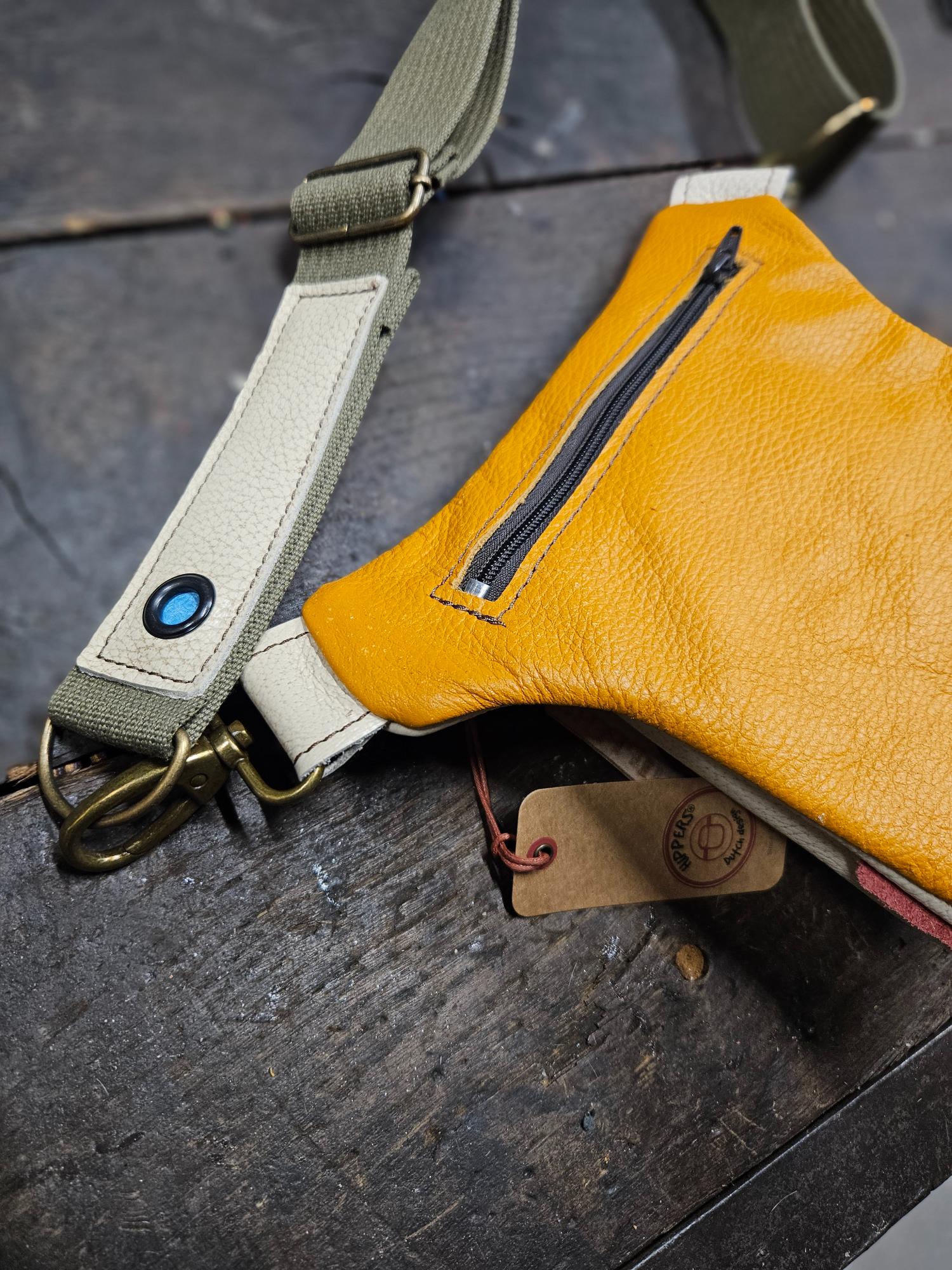 Deze tassen zijn in Nederland gemaakt. De heuptassen zijn voornamelijk gemaakt van oude leren bankstellen en oude spijkerbroeken. Eigenlijk van alles wat leuk en mooi is om te recyclen. Hoe gaaf is dat! Het kan dus gewoon zijn dat je het bankstel van je tante aan je broek hebt hangen!