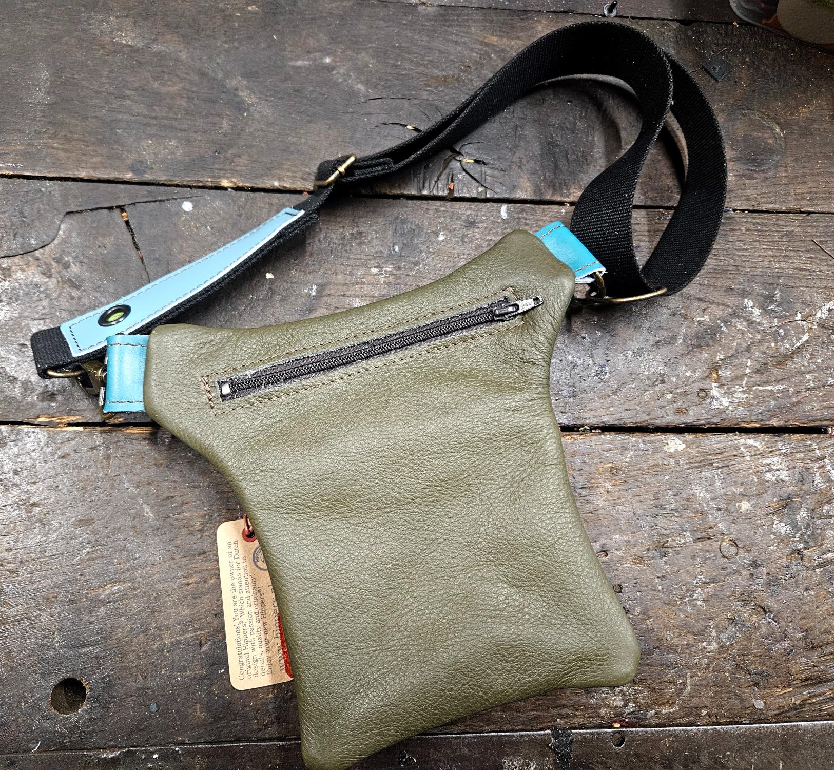 Deze tassen zijn in Nederland gemaakt. De heuptassen zijn voornamelijk gemaakt van oude leren bankstellen en oude spijkerbroeken. Eigenlijk van alles wat leuk en mooi is om te recyclen. Hoe gaaf is dat! Het kan dus gewoon zijn dat je het bankstel van je tante aan je broek hebt hangen!