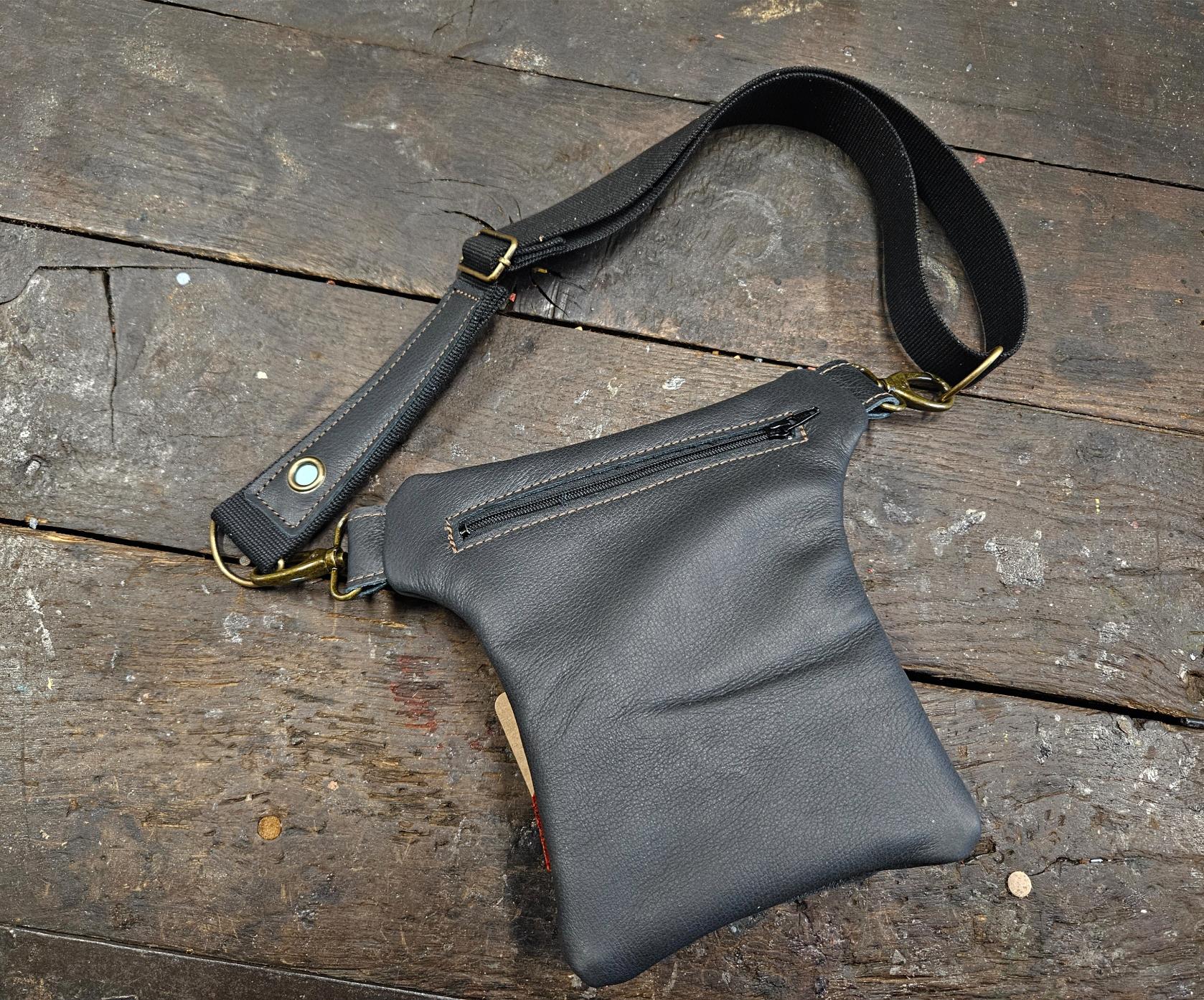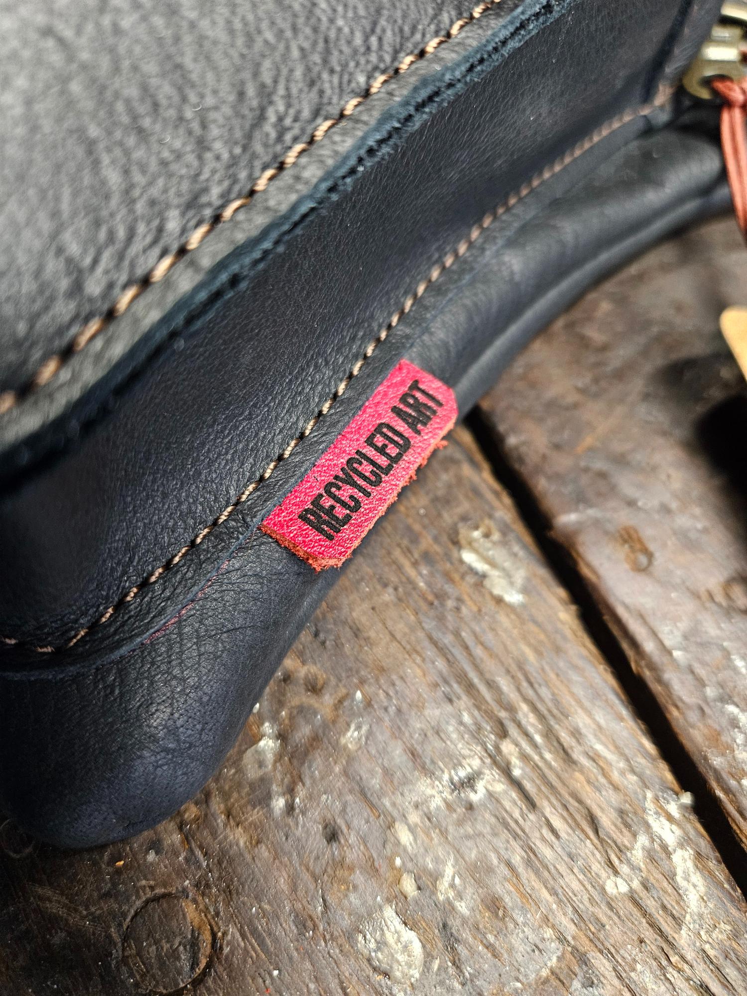 Het leer is afkomstig van oude lederen banken/stoelen. Echt een uniek recycleproject dus! Bij grotere mensen handig om er dan een verlengbandje bij te bestellen als je deze cross-over wil dragen.